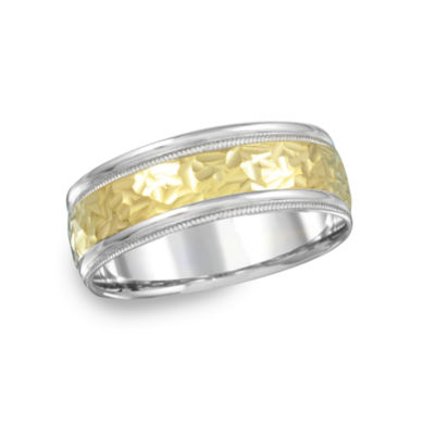 ArtCarved 14k Two Tone Gold Men's Hammered Center Wedding Band