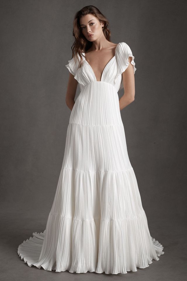 Bhldn Valerie Flutter-Sleeve Pleated Satin Wedding Gown - Web our valerie wedding gown pairs a dramatic plunging neckline with an empire waist and cascading, dreamy tiers of pleated. This item is currently sold out. 011 our valerie wedding gown pairs a dramatic plunging neckline with an empire. Web all wedding dresses new arrivals reduced trending popular.