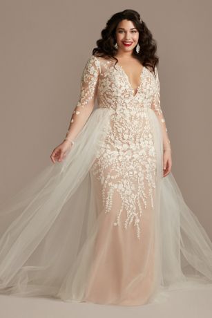 Floral Illusion Plus Size Bodysuit Wedding Dress David's Bridal in