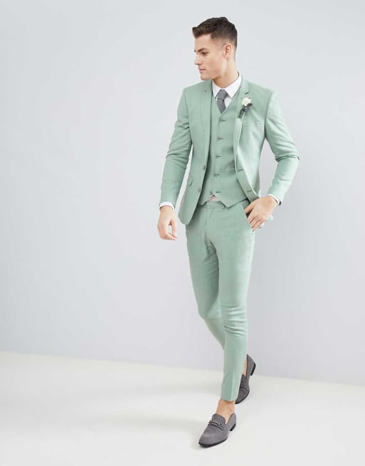 ASOS DESIGN wedding super skinny suit in sage green linen ASOS
