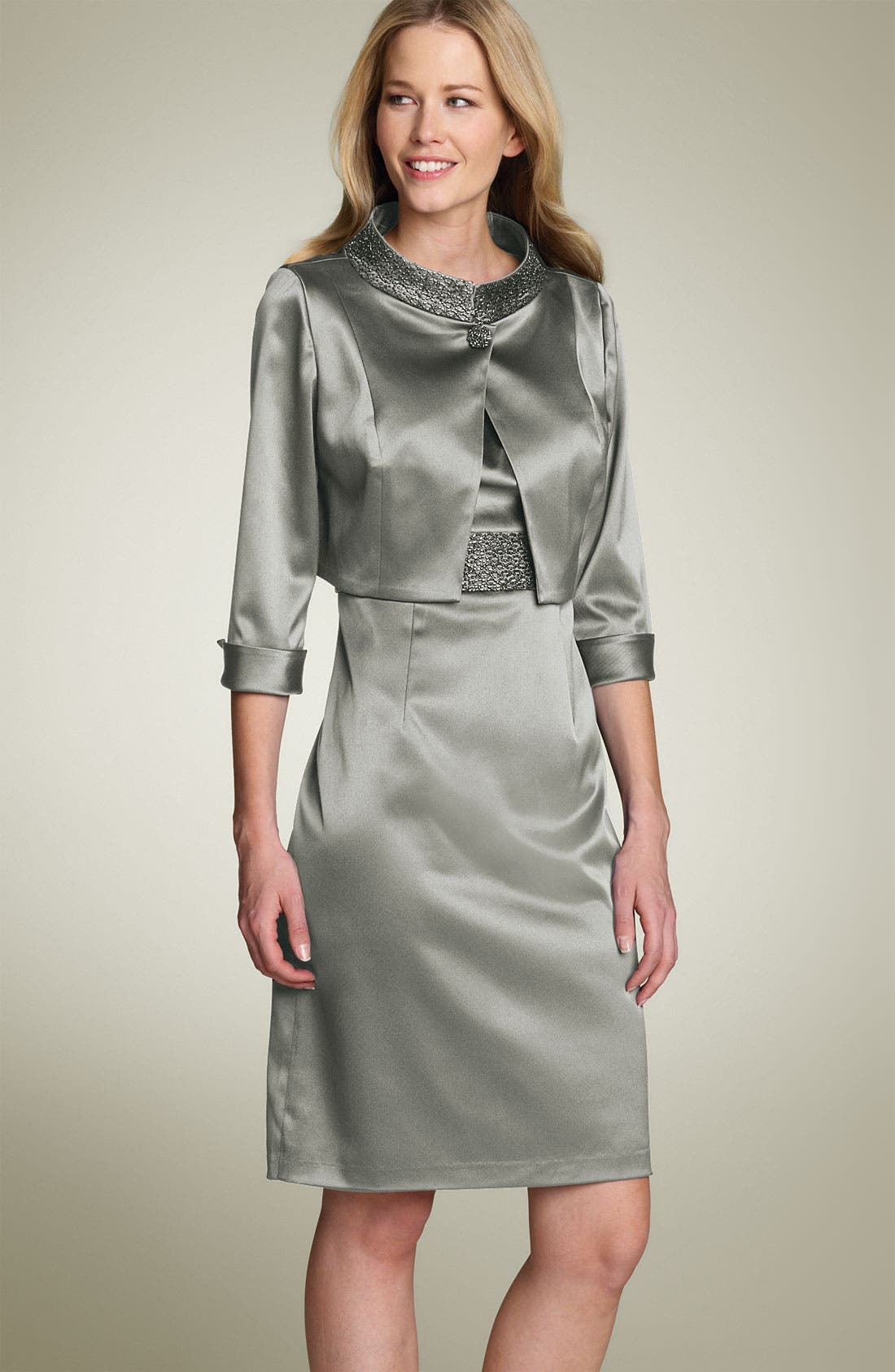 Cachet Beaded Stretch Satin Sheath Dress with Jacket (Petite) Nordstrom