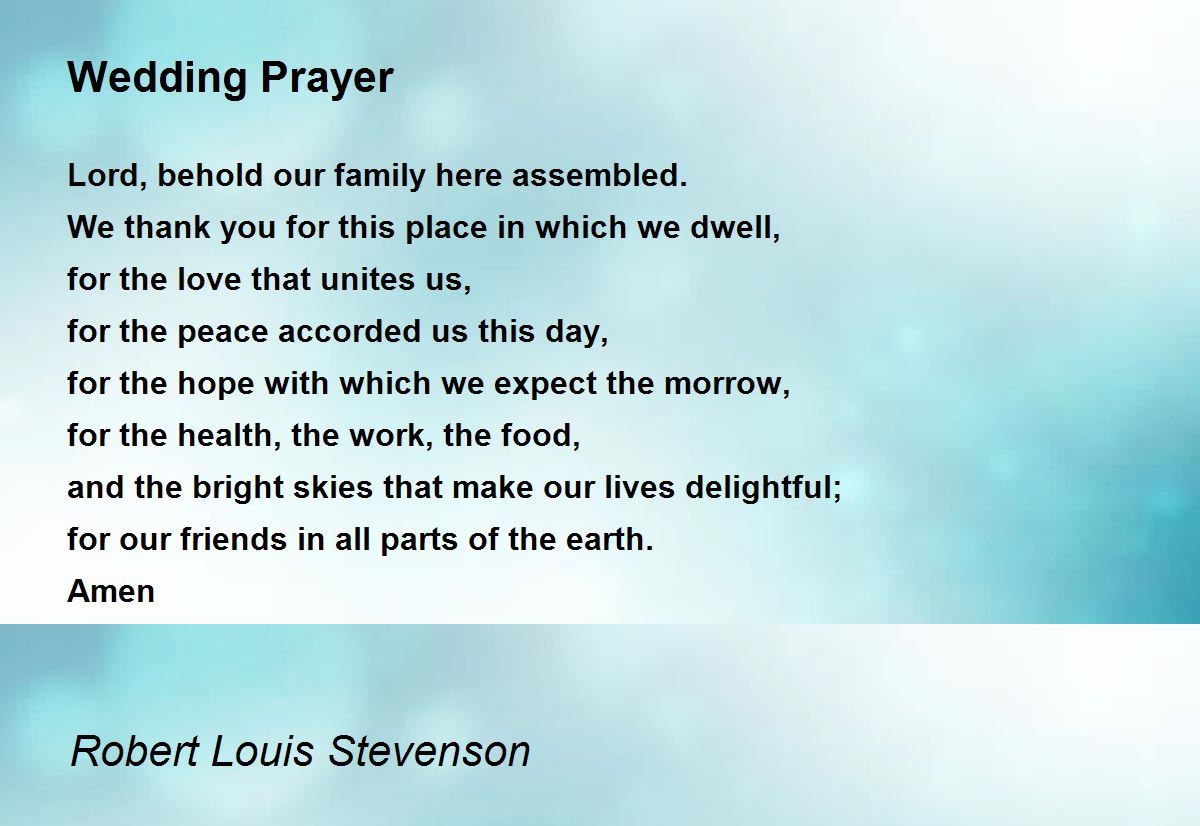 Web result read poem “wedding prayer“ by poet robert louis stevenson: For our friends in all parts of the earth. Web result wedding prayer by robert louis stevenson. Lord, behold our family here assembled. Web result for the love that unites us, for the peace accorded us this day, for the hope with which we expect.