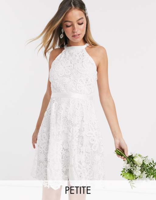 Y.A.S Petite wedding mini dress in white lace ASOS