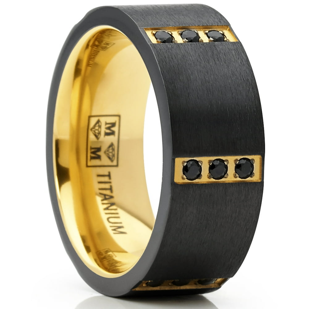 RingWright Co. Men's Black Zirconium Wedding Band With Gold Tone